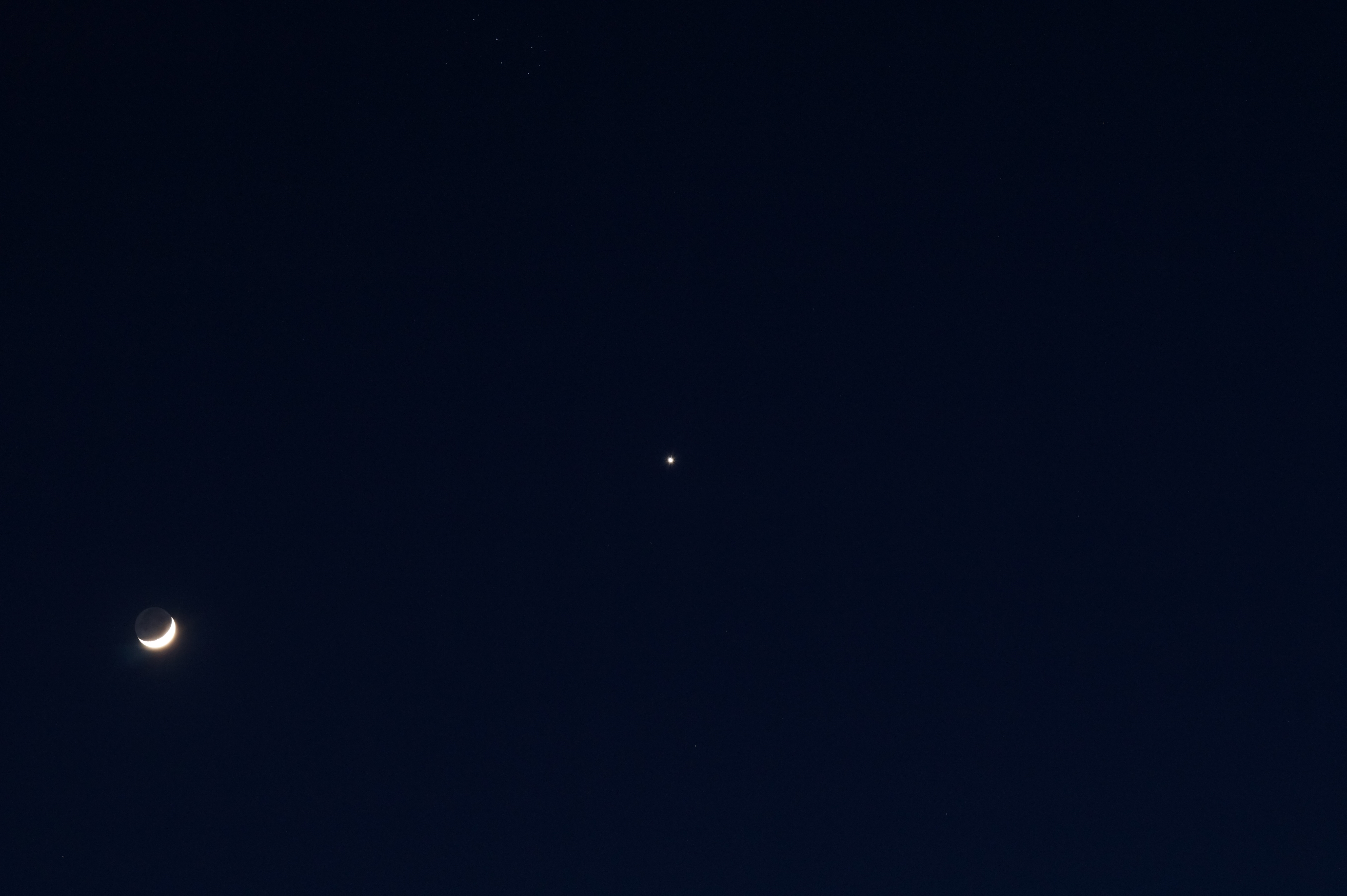 Venus in der Bildmitte, der Mond am linken Rand
