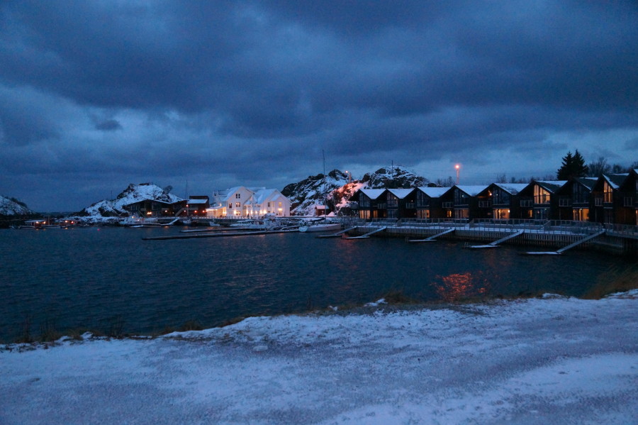 Auf Senja machten wir Halt in Hamn i Senja, was für die folgenden Tage unsere Unterkunft sein würde. Es ist eigentlich nichts weiter als ein kleiner Fischerhafen mit einer Reihe von Gästehäusern, einem Restaurant mit Seminarraum und einem Parkplatz. Es gibt noch ein paar Häuschen, die versprengt in der Landschaft liegen, aber ich kann nicht sagen, ob sie tatsächlich zu Hamn gehören. Auf dem Tagesprogramm stand ein Ausflug mit dem Fischkutter zur Walausschau (engl. Whale Watching), zwei Bustouren über die Insel sowie eine "Polarlichtsafari" abends ab 21:00 Uhr.