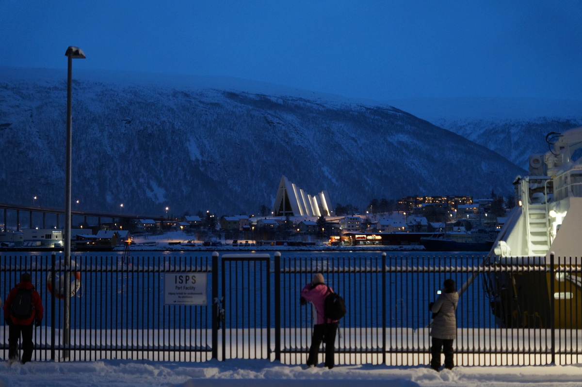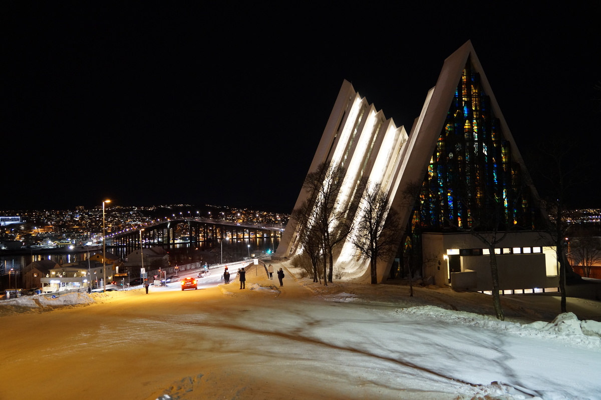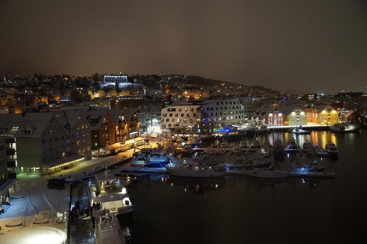 Die Reise ist in erster Linie eine Silvesterreise, aber es bietet sich natürlich die Gelegenheit, nach Polarichtern Ausschau zu halten, so wie es uns zwei Jahre zuvor auf Senja gelang. Damals hatten wir eine Übernachtung in Tromsø mit kurzer Besichtigung; diesmal habe ich die Chance, mir dieses charmante Städtchen (75000 Einwohner ... sagen wir, Stadt) näher anzuschauen.