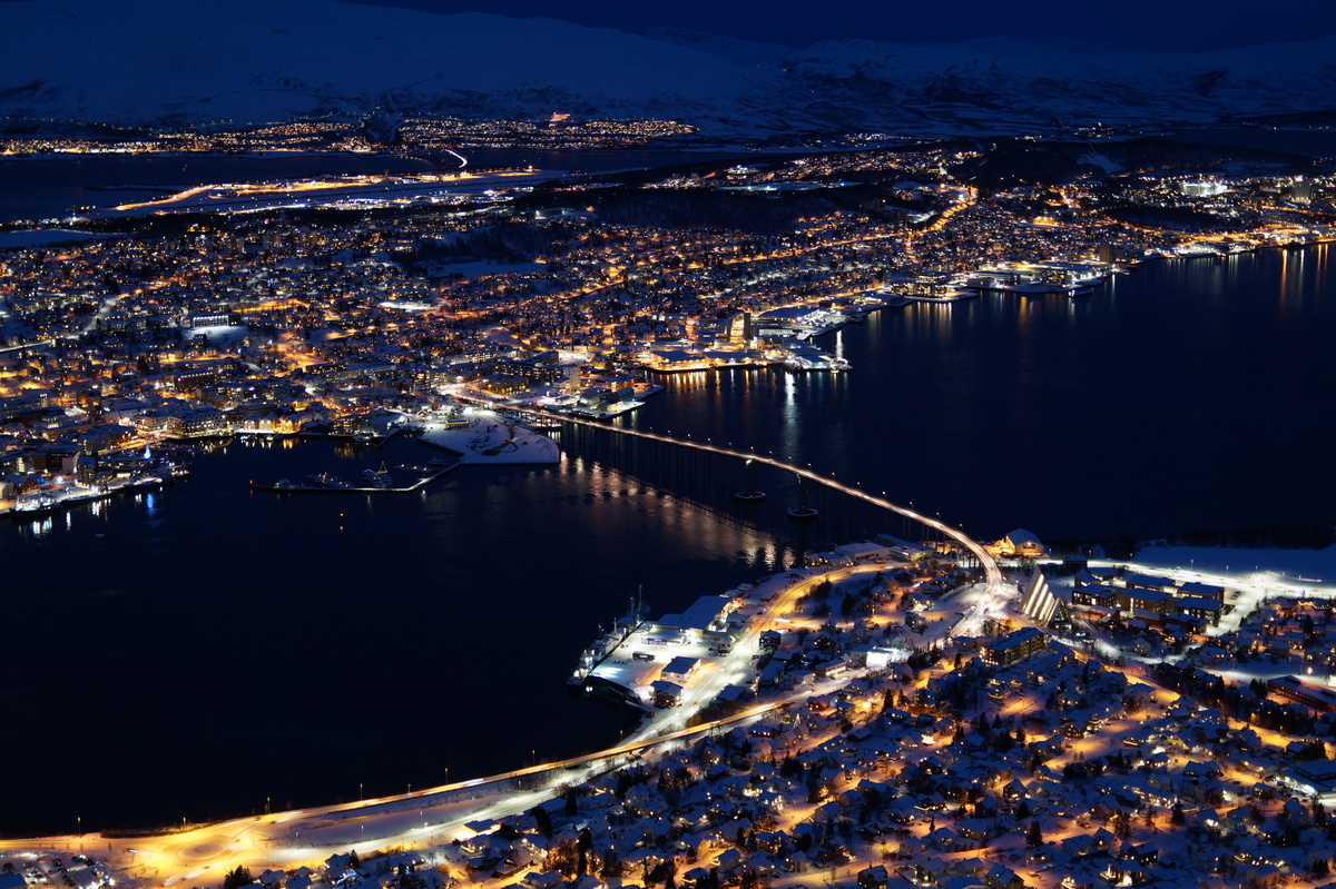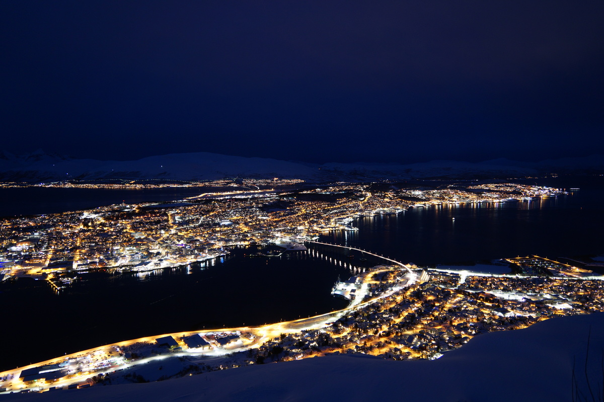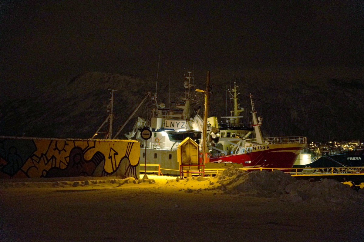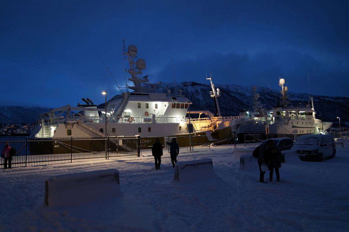 Die Reise ist in erster Linie eine Silvesterreise, aber es bietet sich natürlich die Gelegenheit, nach Polarichtern Ausschau zu halten, so wie es uns zwei Jahre zuvor auf Senja gelang. Damals hatten wir eine Übernachtung in Tromsø mit kurzer Besichtigung; diesmal habe ich die Chance, mir dieses charmante Städtchen (75000 Einwohner ... sagen wir, Stadt) näher anzuschauen.
