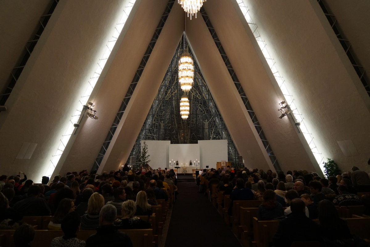 Am Silvesterabend wohnen wir einem Konzert in der "Eismeerkathedrale" bei (eigentlicher Name: Tromstal-Kirche).
