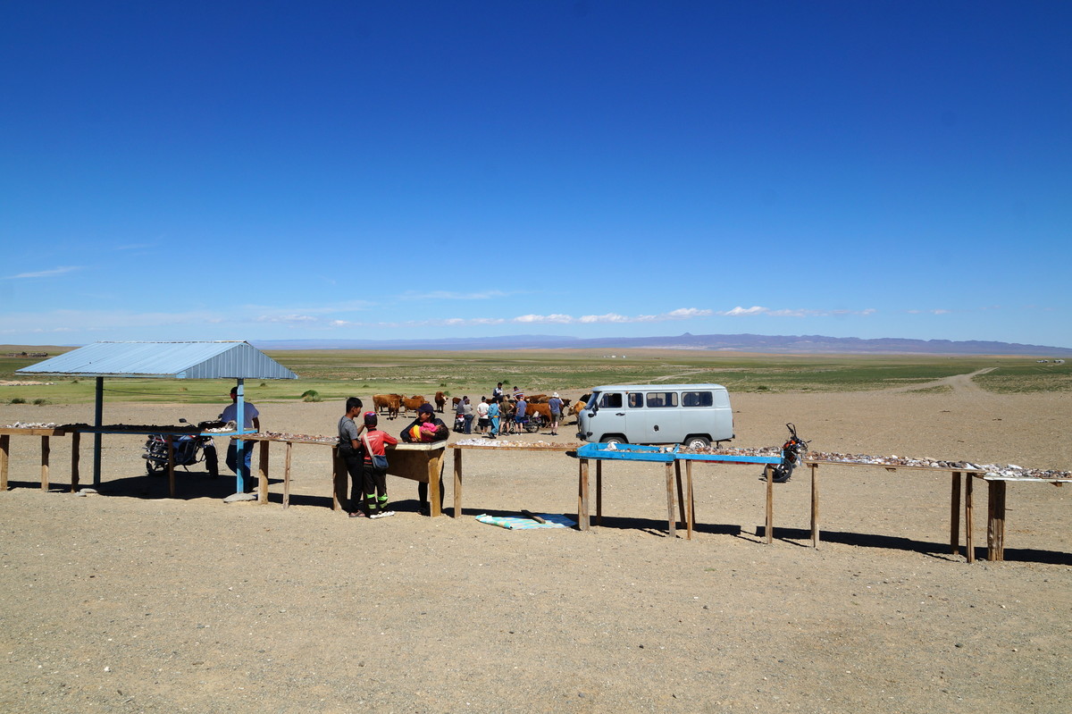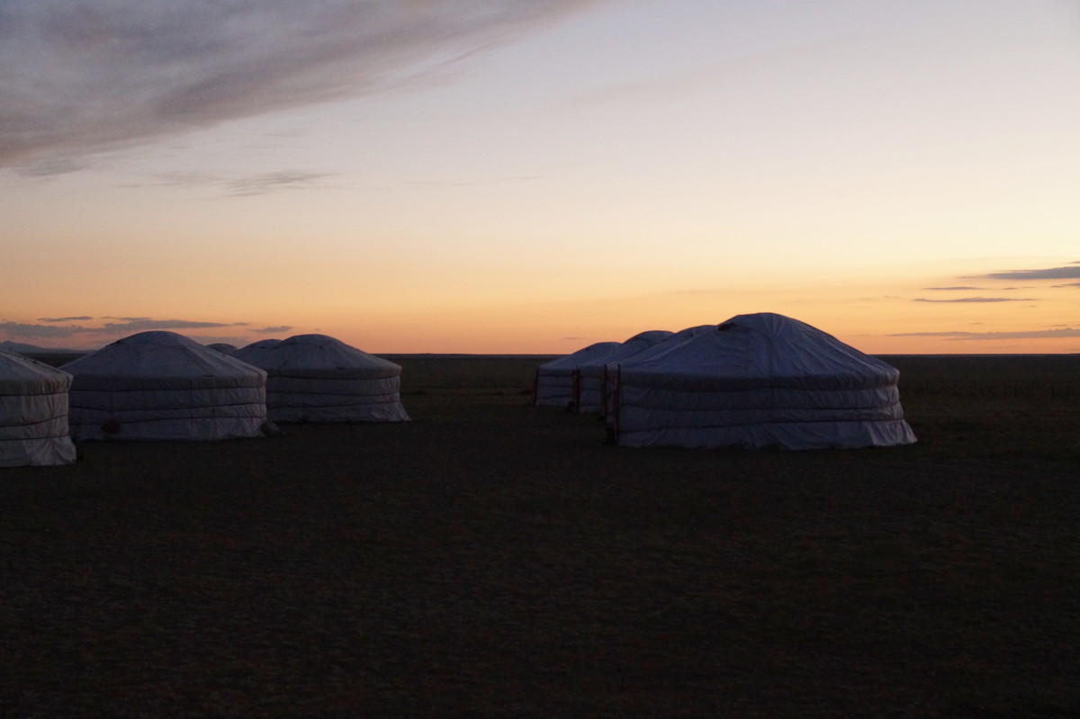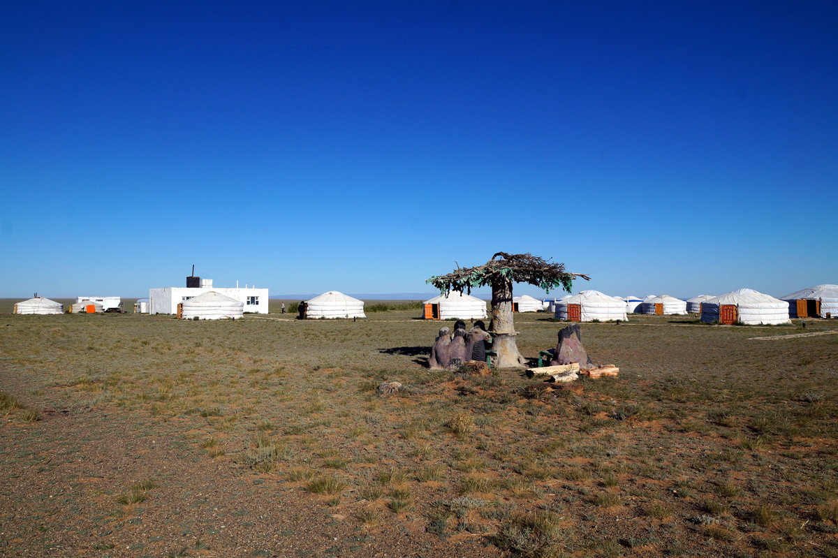 Am Horizont links sieht man ein weiteres Jurtencamp
