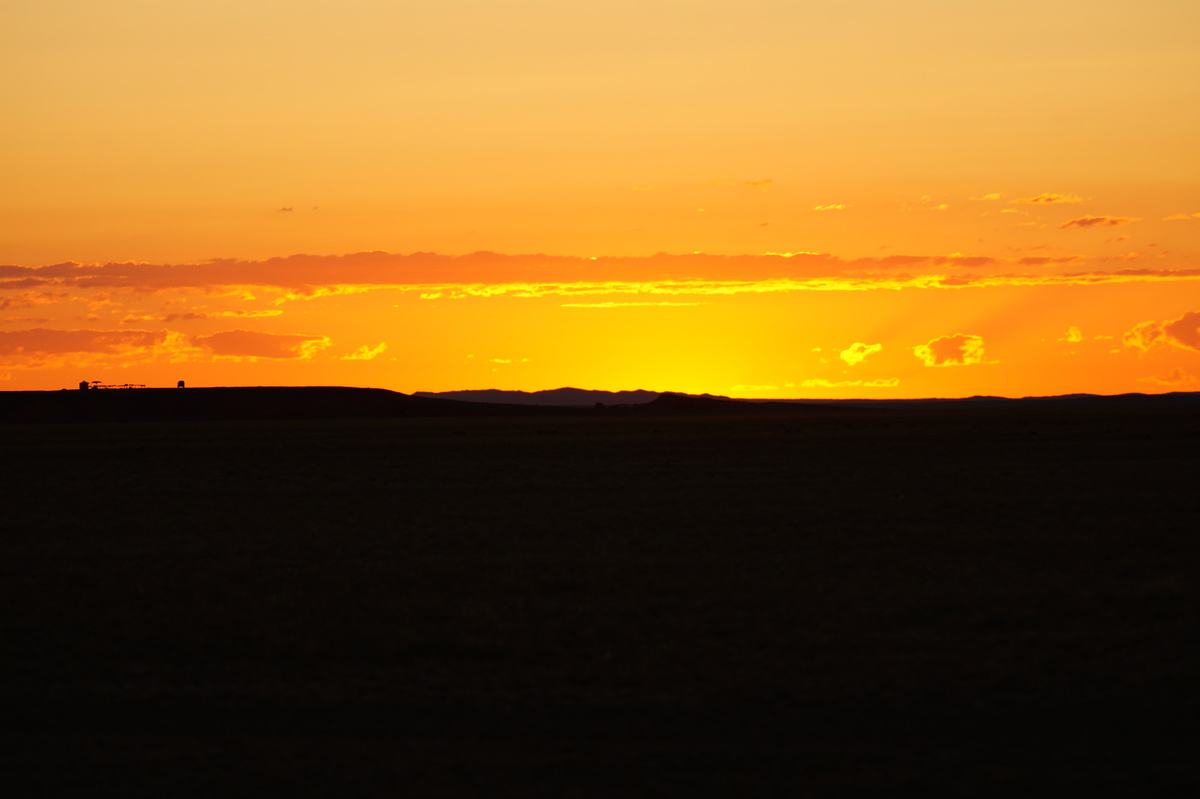 Hier sind die Stände etwas links der Mitte zu sehen. Die Sonne geht gleich auf.