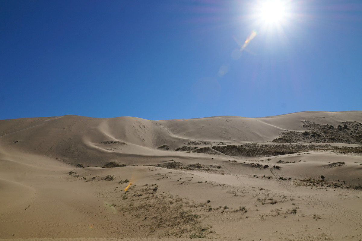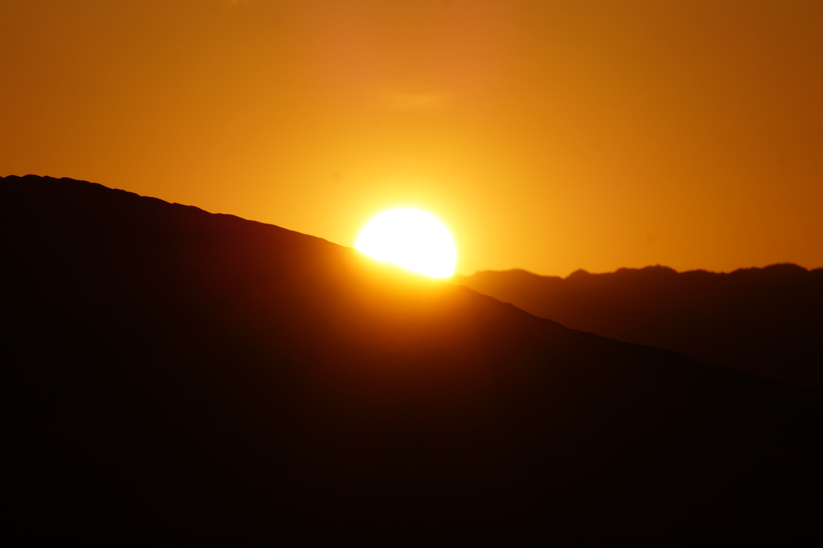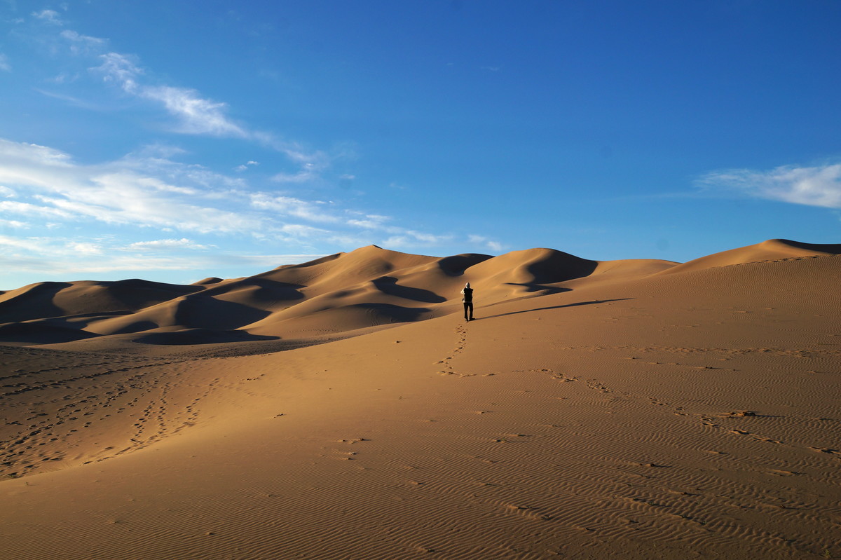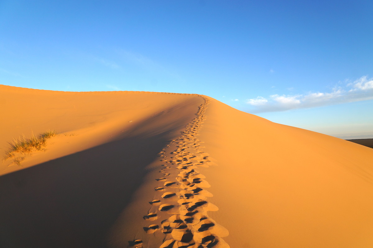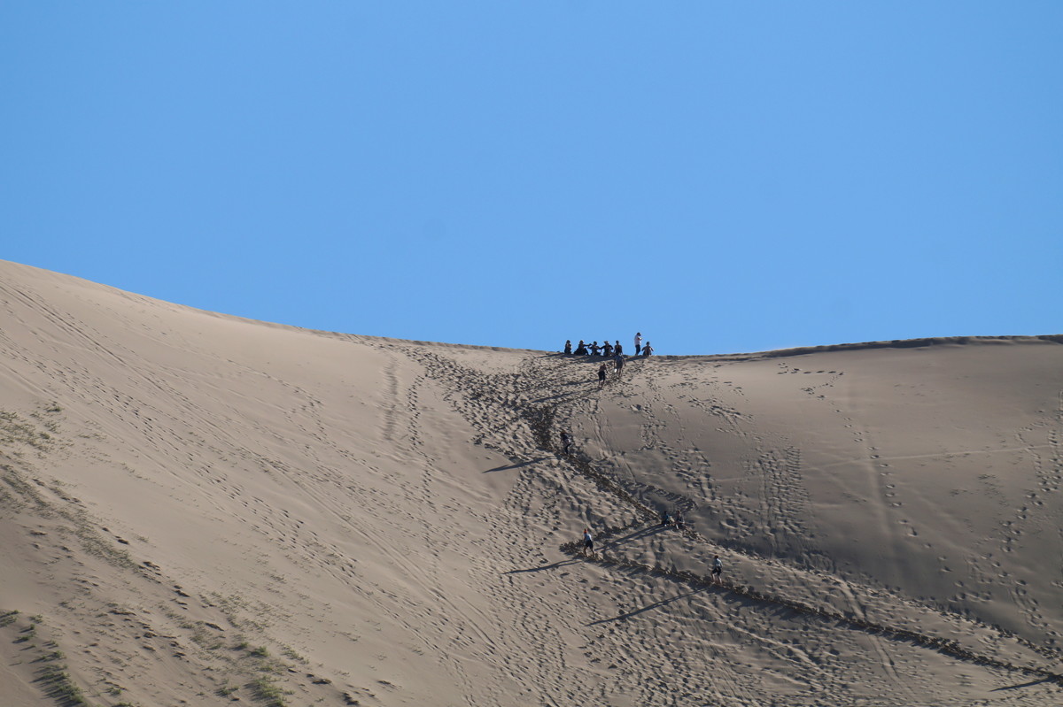 Am frühen Morgen (also, wirklich früh, Aufstehen um halb 5) geht es raus in die Dünen, denn wir wollen den Sonnenaufgang miterleben. Und es ist unglaublich, was die Natur uns bietet - das Farbenspiel über dem Sand, die sanften Kräuselungen, der Sand, der im Gegenlicht fast wie Schnee aussieht.
