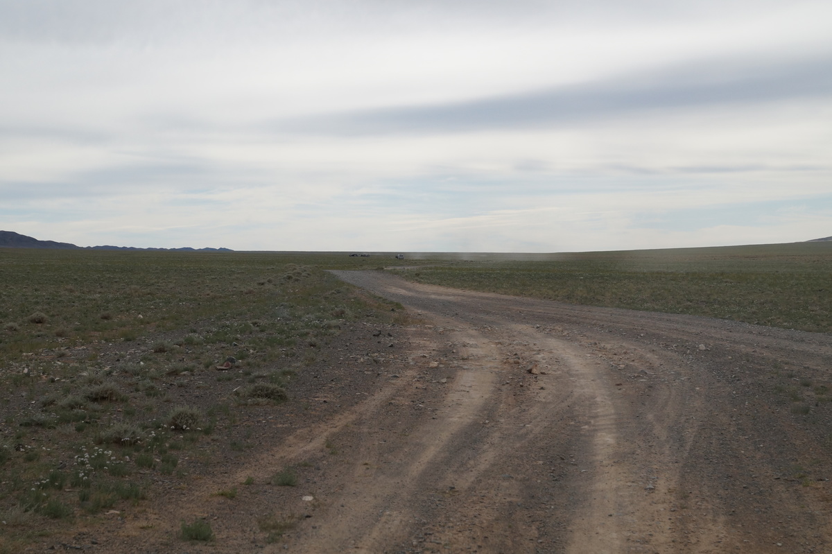 Es geht wieder nach Osten über staubige Pisten. Wir sind nicht alleine - einige andere Busse zeichnen ihren staubigen Weg in die Einöde.