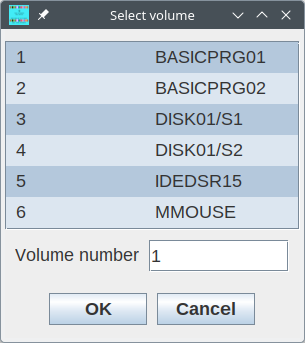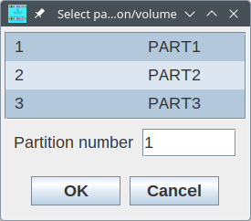 In the case of partitioned images, TIImageTool requests you to choose the partition or volume to open, as shown on the right. Partitions are used on IDE drives, while volumes are found on CF7 images.